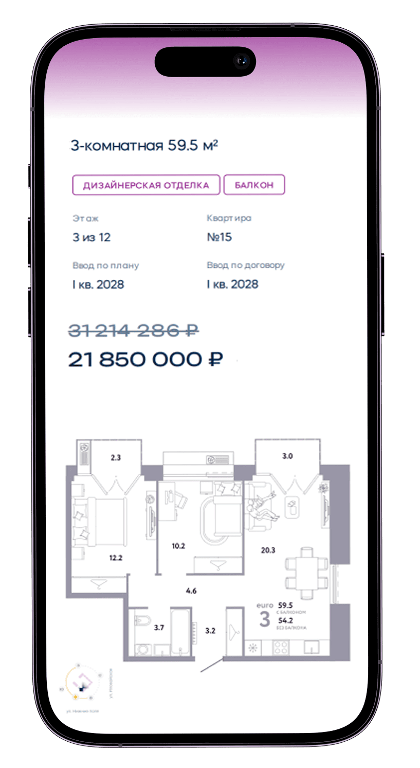 В ЖК «Страна.Заречная» представлено более 60 планировочных решений — от студий до евро-4. Квартиры отличаются правильной геометрией, продуманным зонированием и увеличенной высотой потолков. В проекте предусмотрены редкие форматы: квартиры с террасами, мастер-спальнями, гардеробными и постирочными.