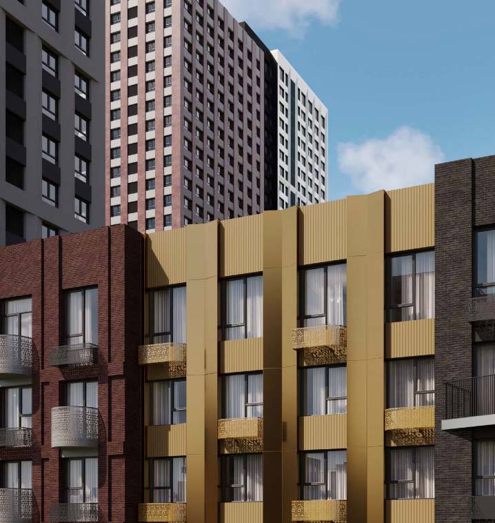 Все входы выполнены на уровне земли, а доступ в подъезды возможен по биометрии, что повышает комфорт и безопасность жителей.
