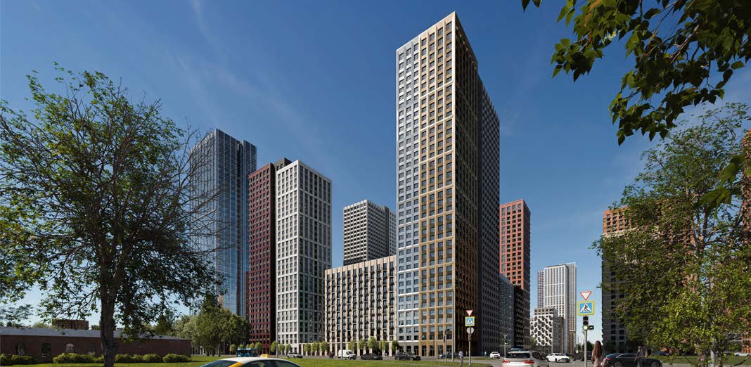 Благодаря продуманным расстояниям между секциями квартиры получают хорошую инсоляцию, а из окон открываются виды на парковые зоны и Москву-реку.
